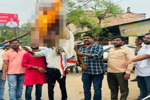 प्रतापगढ़: ओवैसी के बयान पर पर भड़के भाजयुमो कार्यकर्ता, फूंका पुतला