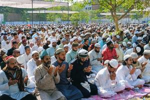 प्रयागराज: नमाज के बाद एक दूसरे को गले लगाकर दी ईद-उल-फितर की बधाई